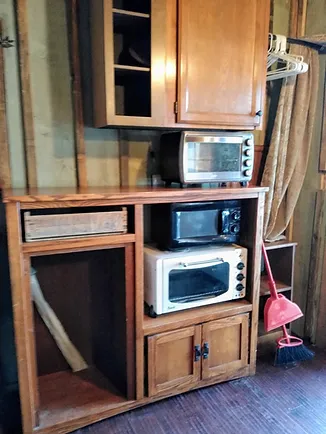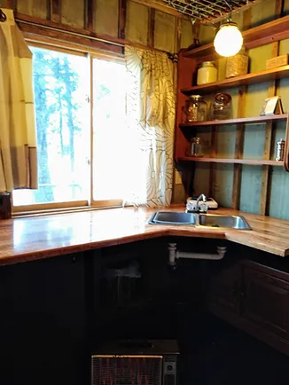The Napshack is a darling little space heated by a woodstove. The cabin has a small sink with a portable bedside commode, also an outhouse just feet away and a great hot water hand-crafted outdoor shower! If you are staying in this cabin, you can share the half bathroom in the main part of the house.